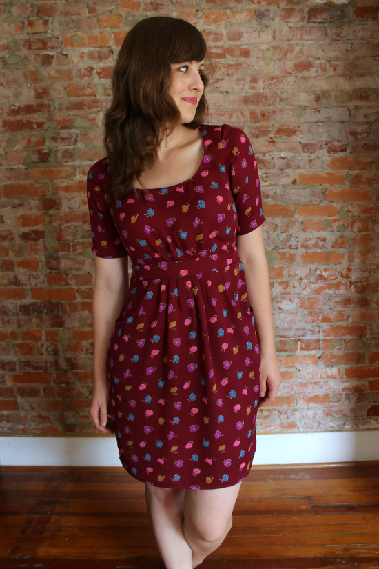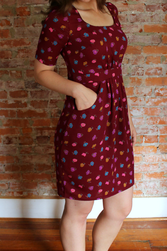 The jersey fabric is perfect in every way: richly-hued (more maroon than the orangey-ness in the detail shots), whimsical, springy and drapey. It was sent to me as a thank you from Amy Alan for reviewing her Craftsy class (oh, did you forget? You can STILL get 50% off her Beginner Serging class through this link here). It's like she knew that maroon was one of the three serger thread colors I already owned. Brilliant much? And because of her class, I knew how to overlock this fabric perfectly. Well, uh, as perfect as I am patient.