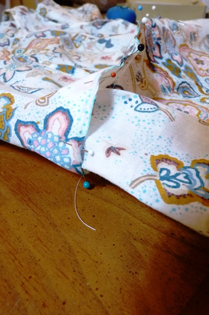 I tried my damndest to make the bust darts so they wouldn't be so, uh, pokey. STILL, they're a bit prominent. I think the angle of them, too, draws your eye to risque places, which I'm not really a fan of doing. Ohhhh well.