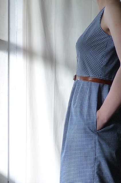 Bleu-tiful. I made this blue-checked dress two weeks ago, but was kinda reluctant to post it around the same time as my blue-checked pajama pants, but I won't have any other final product to show you for awhile. My trip to Pennsylvania last week meant approximately six non-sewing days, which is torture for someone with a crafty addiction, as I'm sure you all know (...right?). My sewing machine nearly suffocated under its little plastic dust-repellent cover, something I admit I rarely use when I'm sewing daily. It grunted at me when I finally switched it on. Needy much?