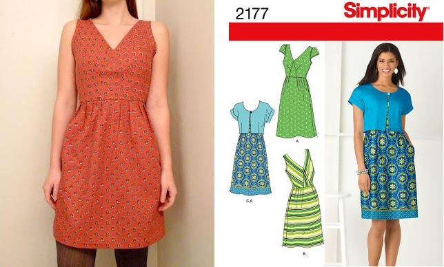 I've made this pattern before -- Simplicity 2177. It's a pattern that is easy to pass over, and I don't blame you for that since it looks totally boring on l'envelope. Of course, it's their fault for covering up the only interesting part of the dress --the front bodice with the two bias-cut pieces and triangle inset-- on the model. Sewing Commandment 1: Thou shalt not judge a pattern by its Big 4 envelope cover styling.
