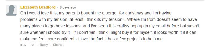 So if you made it through my rambling, you may be keen to take this class yourself! Maybe you recently bought or received a serger, or you bought one three years ago and it's still in its box. Maybe you just want your stitch quality to be a little better, or are interested in making the projects she teaches. This class could be perfect for you! Because Amy and Craftsy are SO FREAKING NICE, they have offered to give away a free Beginner Serging class to ONE OF YOU!