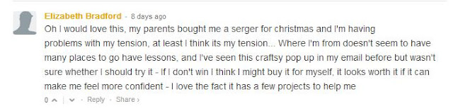 All you have to do is leave one comment below, stating why you think this class could benefit you. That's it! The giveaway is open until February 21st at midnight EST (a week from today) and I'll announce a winner the next day. Good luck, future serging fiends. Meanwhile, you can ask me any questions you have about the class and I'll be happy to answer.