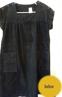 This was a very large black corduroy jumper from the 1970s (or so they say). I got it for $5 from the "rough rack" at the local vintage thrift store.