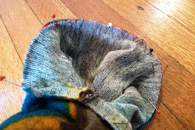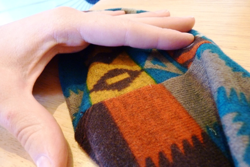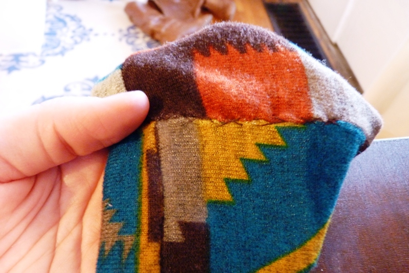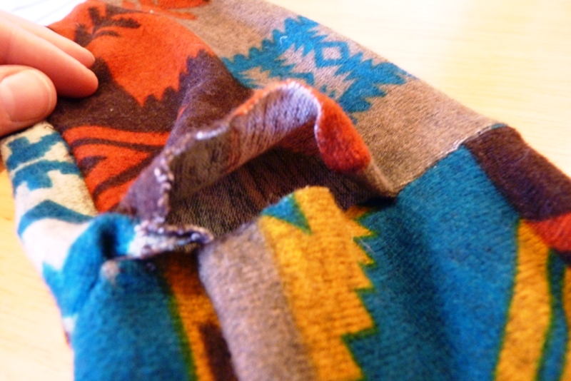 I bought some single fold bias tape the other day with the intention of using it as finishing on a baby swaddling blanket I'm making for a co-worker. I didn't end up using it for that project, so I thought I'd try it here. Kinda cool-looking, actually.